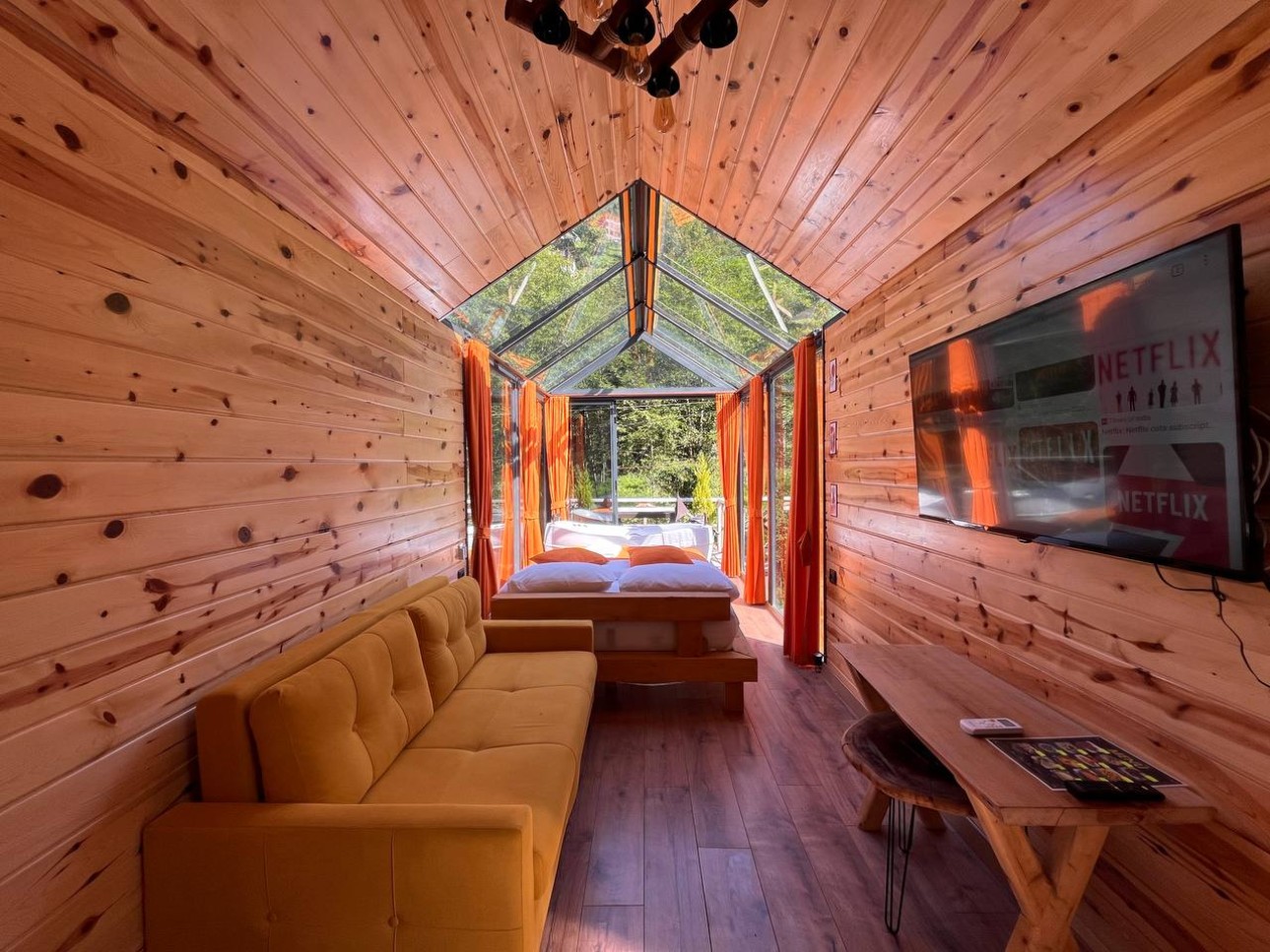 -Tiny house evimiz ahşap ve cam teraslı olarak tasarlanmıştır.